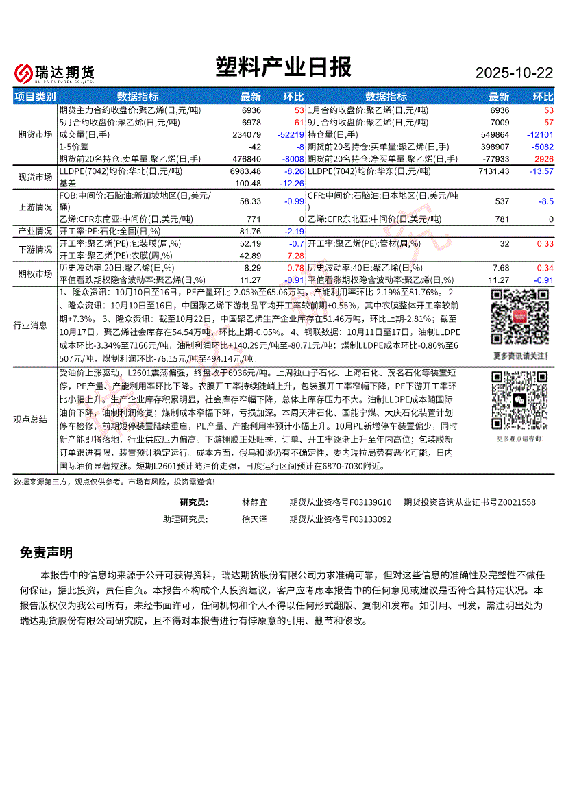 研报:瑞达期货-塑料产业日报-251022
