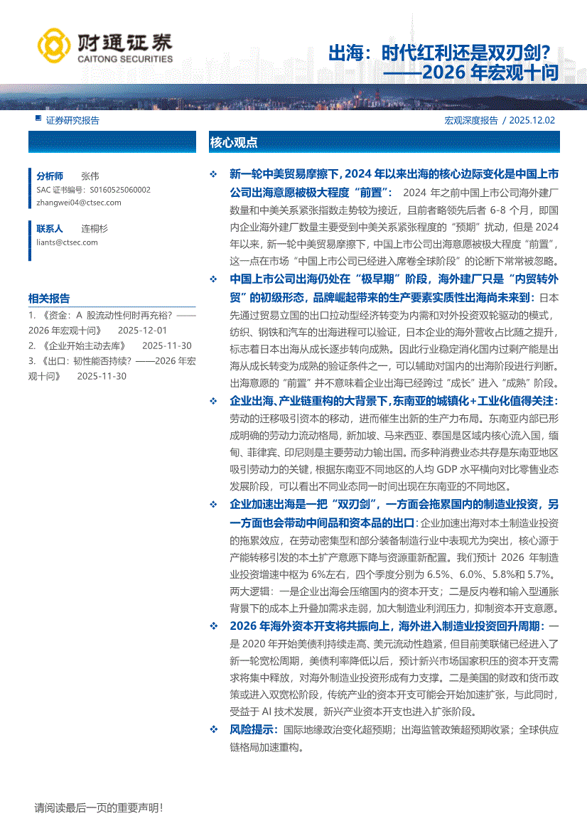 研报:财通证券-出海:时代红利还是双刃剑?——2026年宏观十问-251202