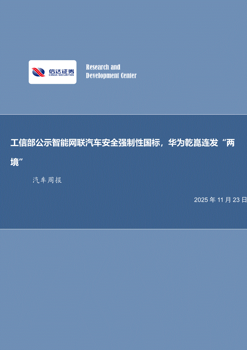 汽车行业研报:信达证券-汽车行业周报:信部公示智能网联汽车安全强制性国标,华为乾崑连发“两境”-251123