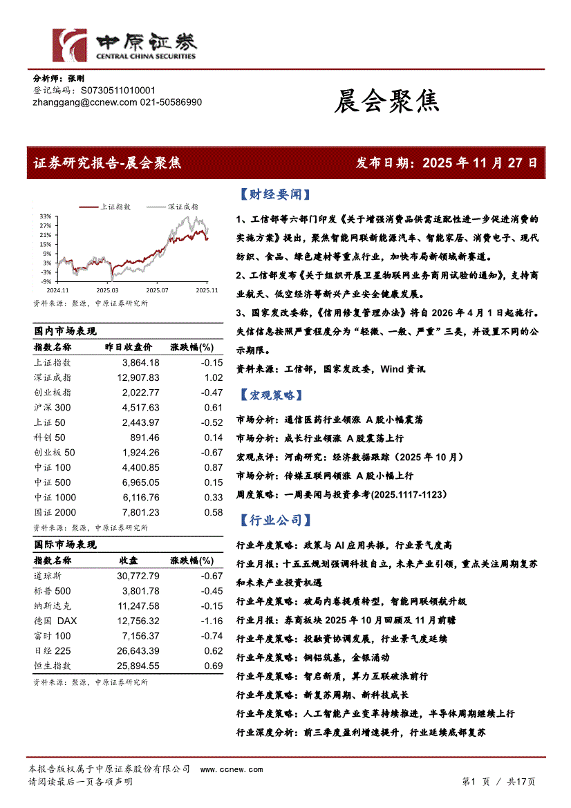 研报:中原证券-晨会聚焦-251127
