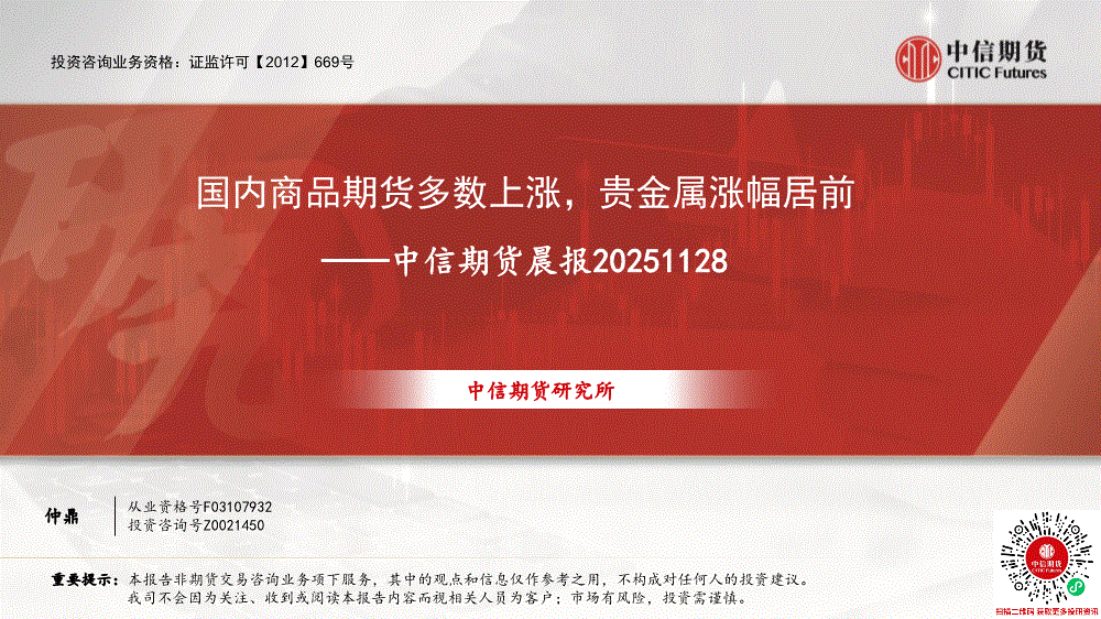 研报:中信期货-晨报:国内商品期货多数上涨,贵金属涨幅居前-251128