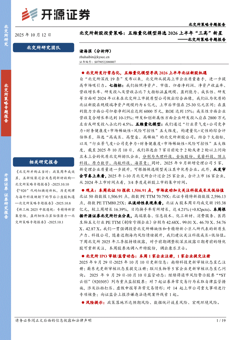 研报:开源证券-北交所策略专题报告:北交所新股投资策略,五维量化模型筛选2026上半年“三高”新星-251012