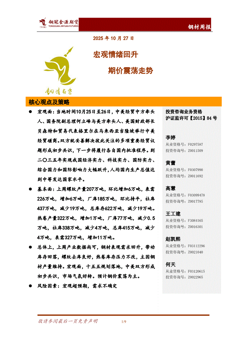研报:铜冠金源期货-钢材周报:宏观情绪回升,钢价震荡走势-251027