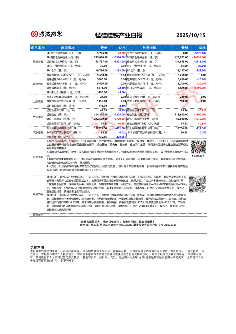 研报:瑞达期货-锰硅硅铁产业日报-251015