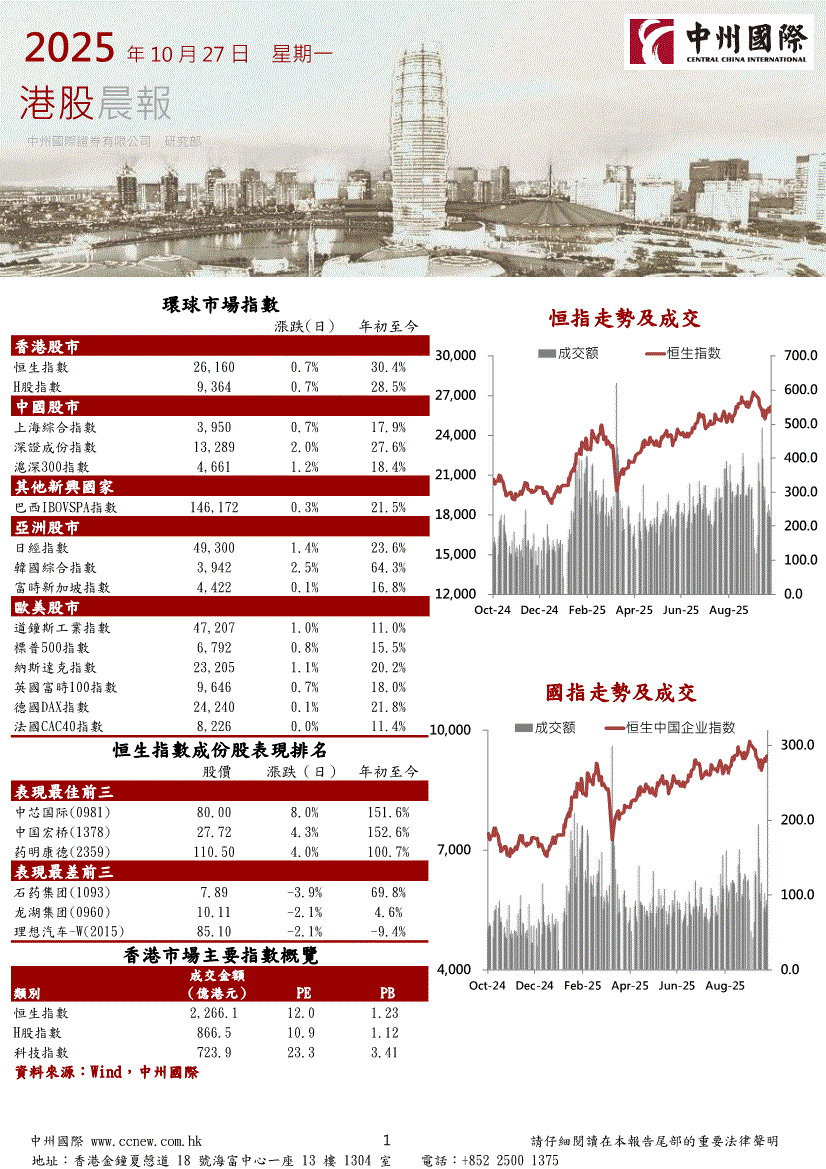 研报:中州国际-港股晨报-251027