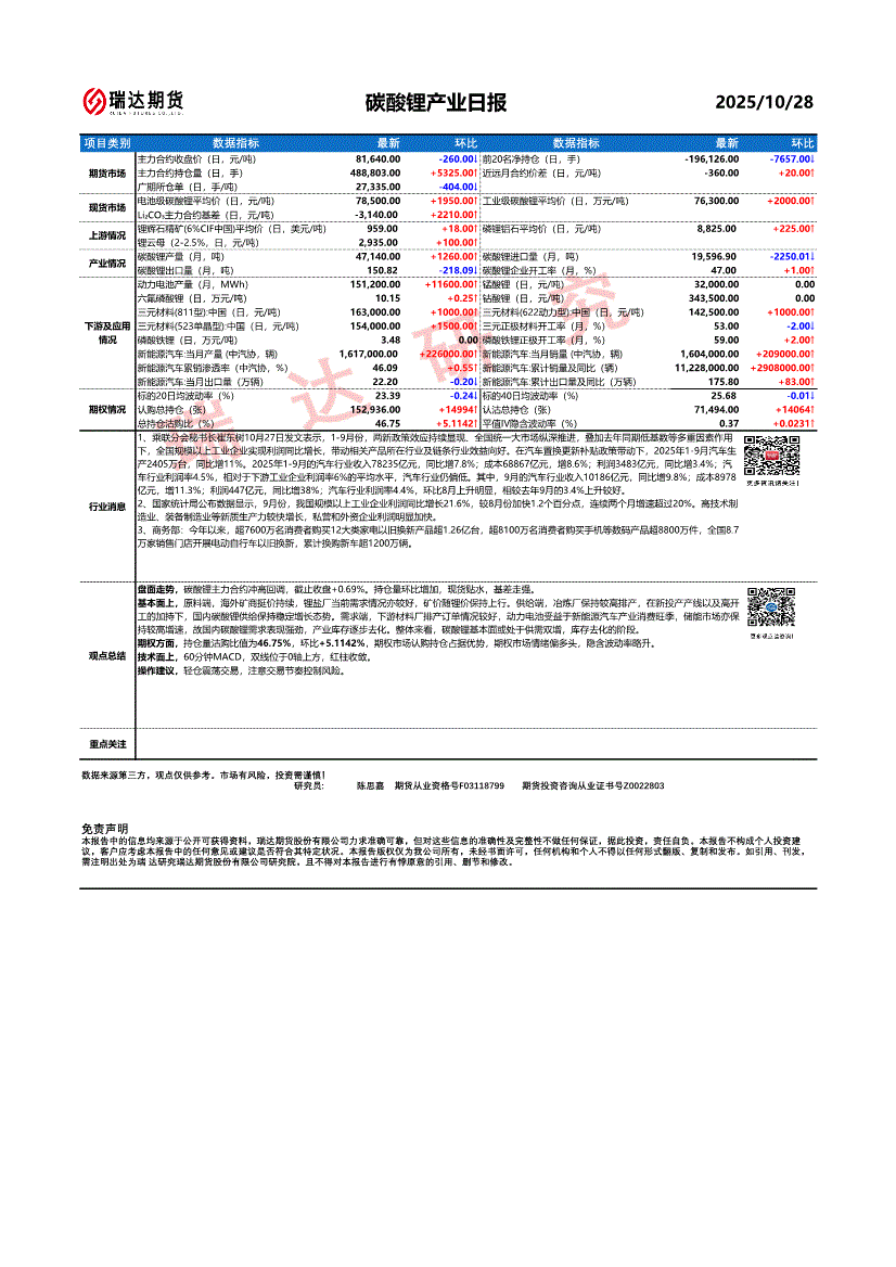 研报:瑞达期货-碳酸锂产业日报-251028