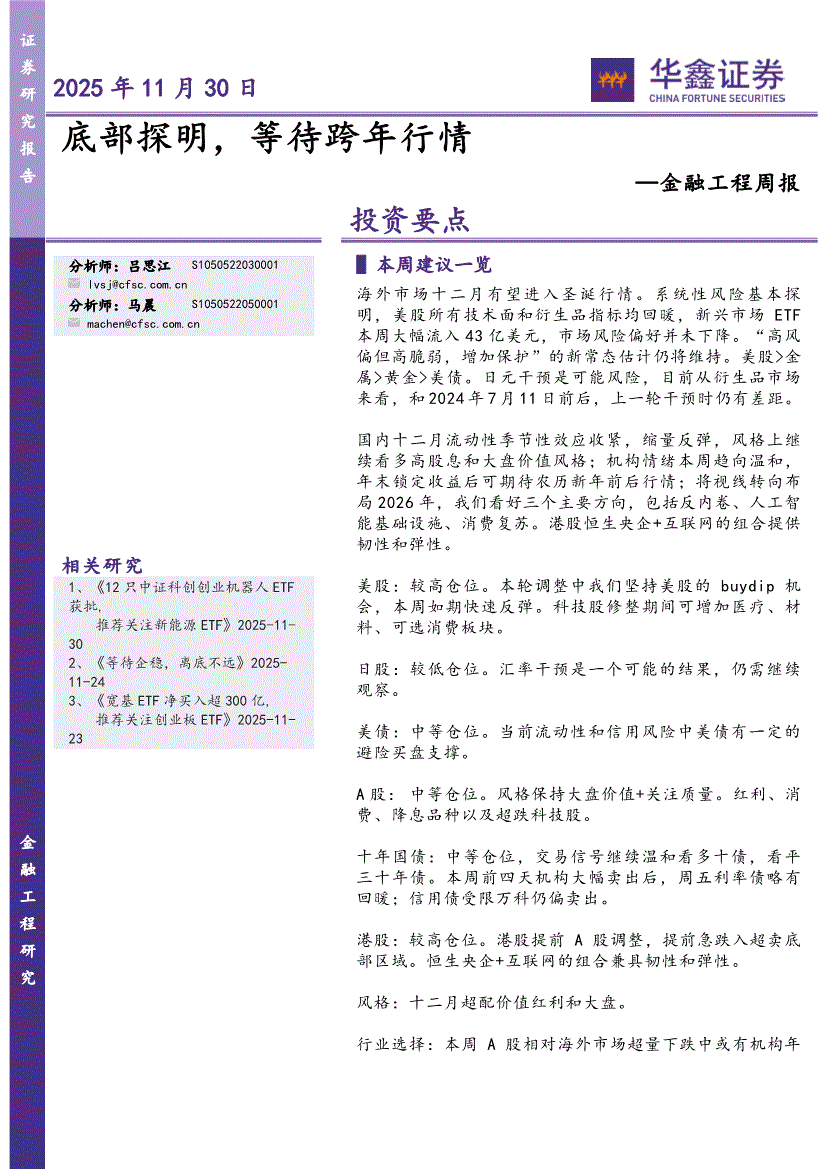 研报:华鑫证券-金融工程周报:底部探明,等待跨年行情-251130