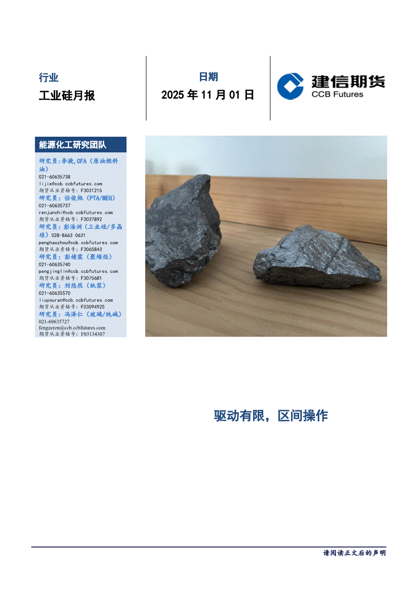 研报:建信期货-工业硅月报:驱动有限,区间操作-251101