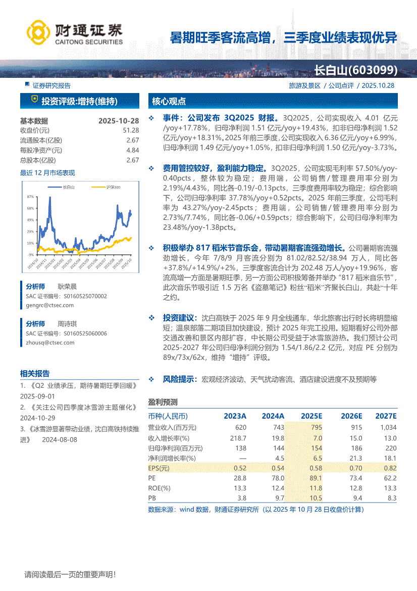 长白山研报:财通证券-长白山-603099-暑期旺季客流高增,三季度业绩表现优异-251028