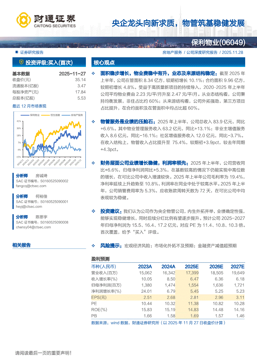 保利物业研报:财通证券-保利物业-6049.HK-央企龙头向新求质,物管筑基稳健发展-251128