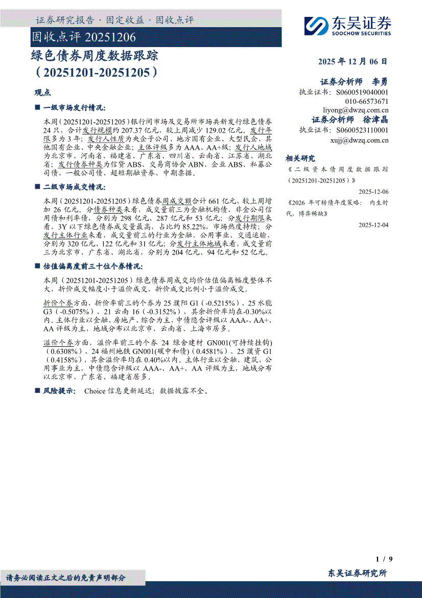 研报:金宝搏官网188金宝搏-固收点评:绿色债券周度数据跟踪-251206