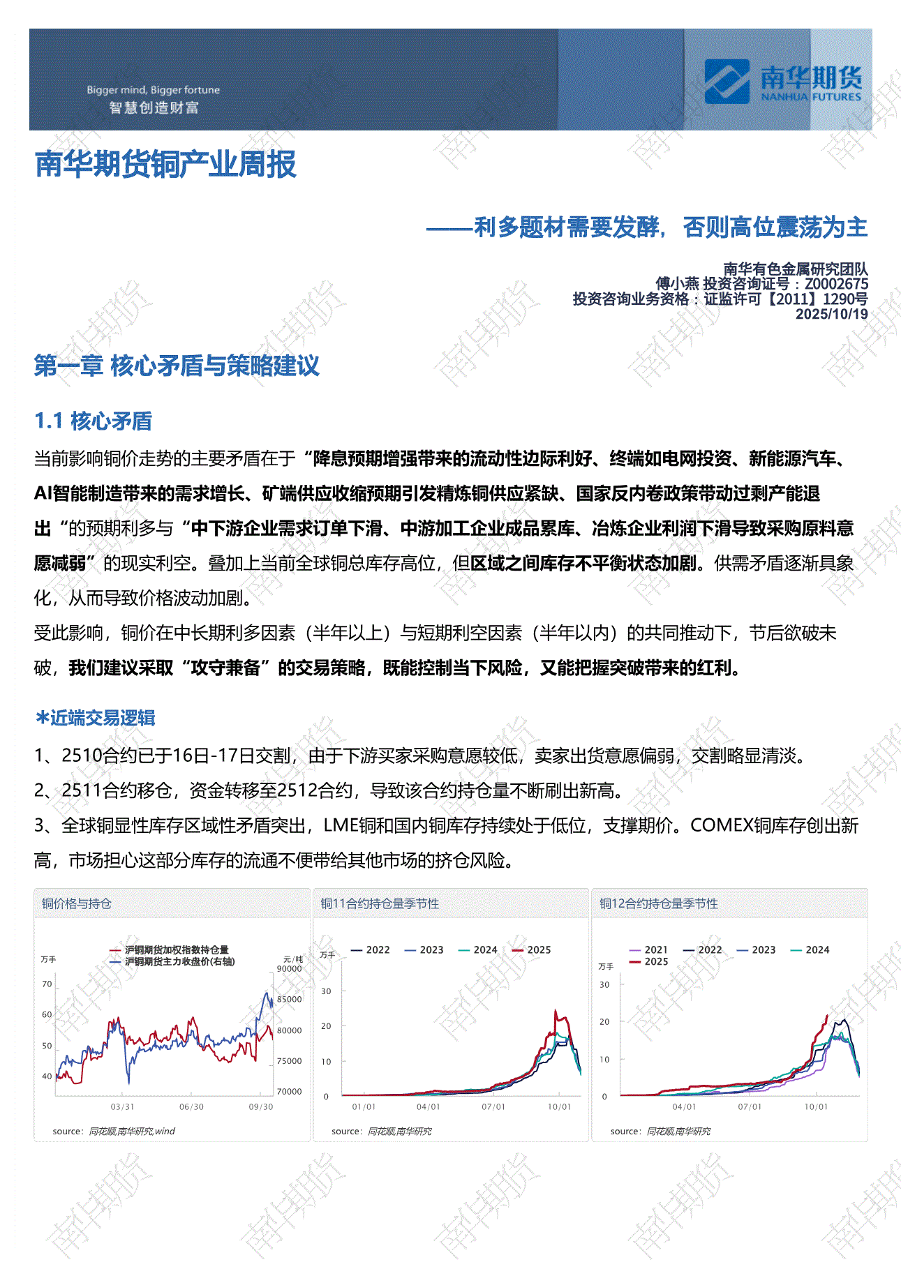 研报:南华期货-铜产业周报:利多题材需要发酵,否则高位震荡为主-251019
