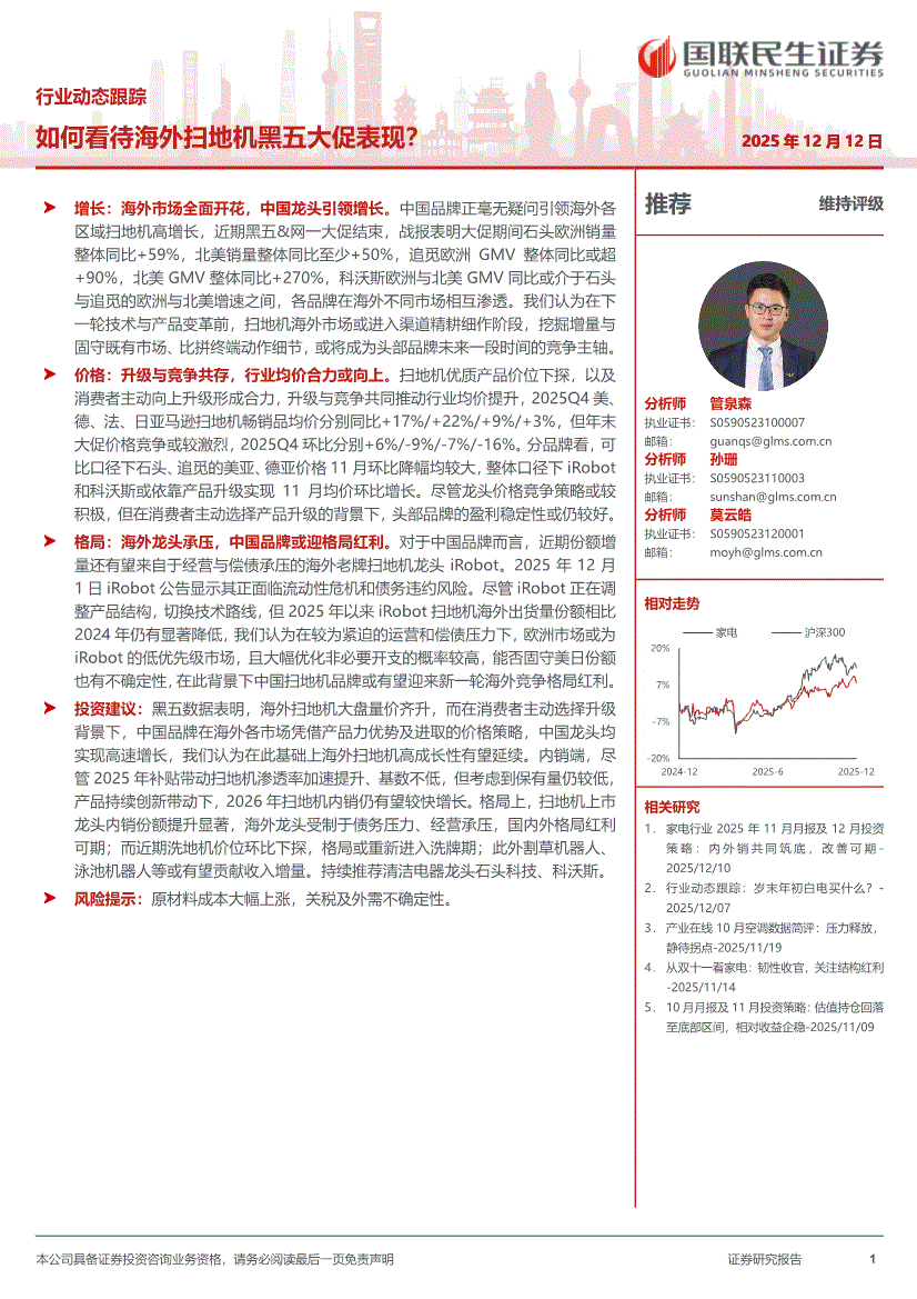 家电行业研报:国联民生证券-家电行业动态跟踪:如何看待海外扫地机黑五大促表现?-251212