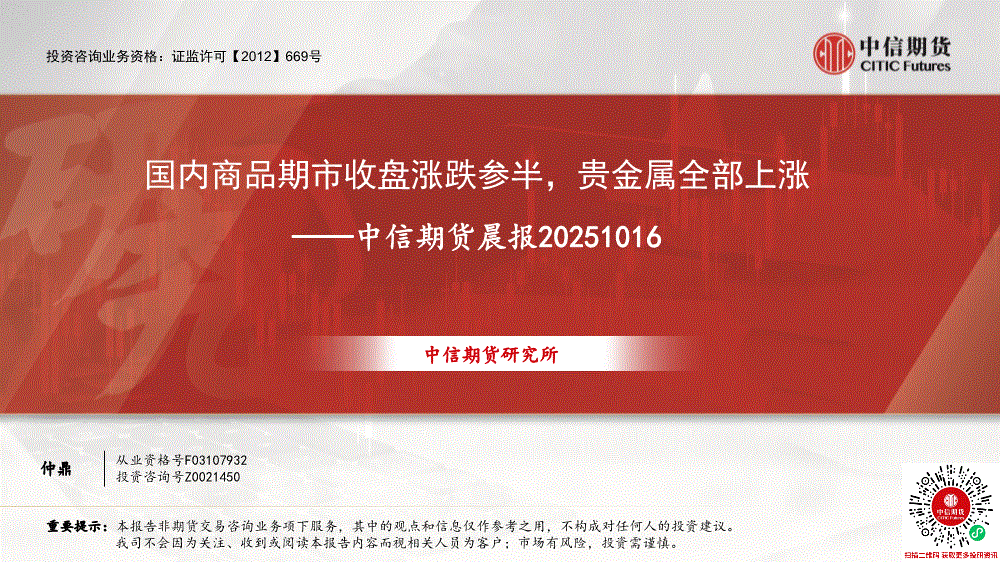 研报:中信期货-晨报:国内商品期市收盘涨跌参半,贵金属全部上涨-251016