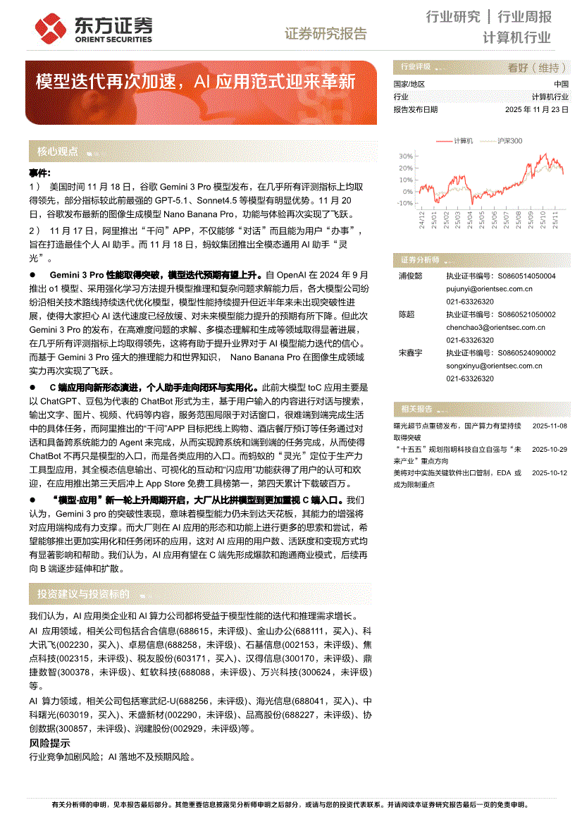 计算机行业研报:东方证券-计算机行业周报:模型迭代再次加速,AI应用范式迎来革新-251123