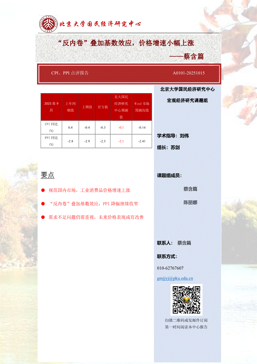 研报:北京大学国民经济研究中心-CPI、PPI点评报告:“反内卷”叠加基数效应,价格增速小幅上涨-251015