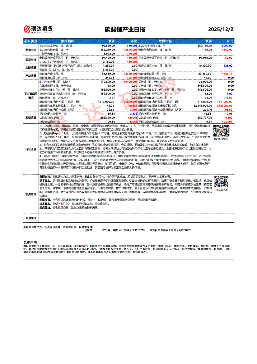研报:瑞达期货-碳酸锂产业日报-251202