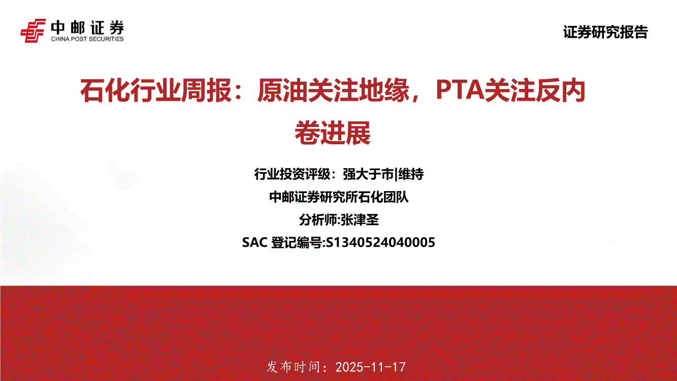石化行业研报:中邮证券-石化行业周报:原油关注地缘,PTA关注反内卷进展-251117