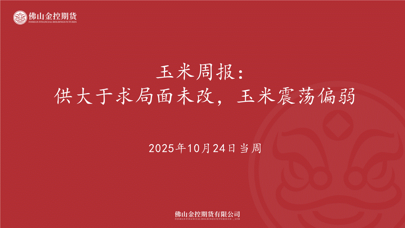 研报:佛山金控期货-玉米周报:供大于求局面未改,玉米震荡偏弱-251024