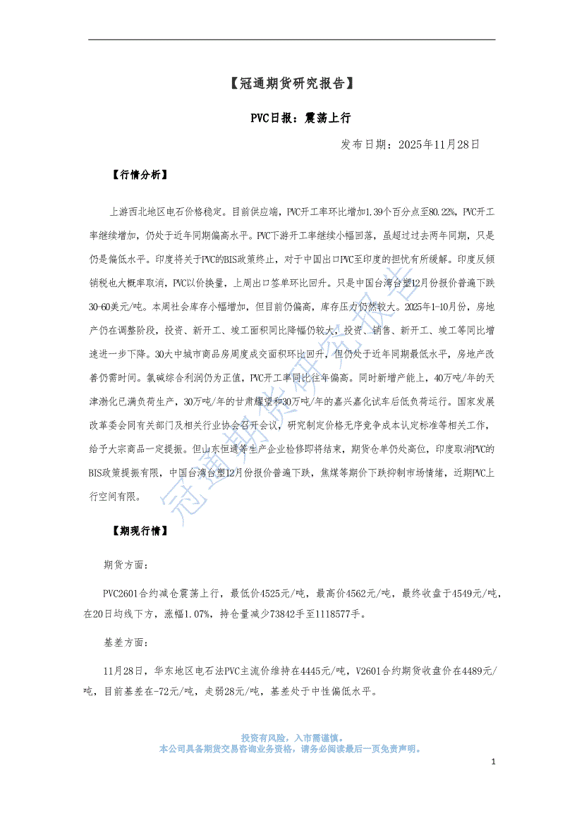 研报:冠通期货-PVC日报:震荡上行-251128