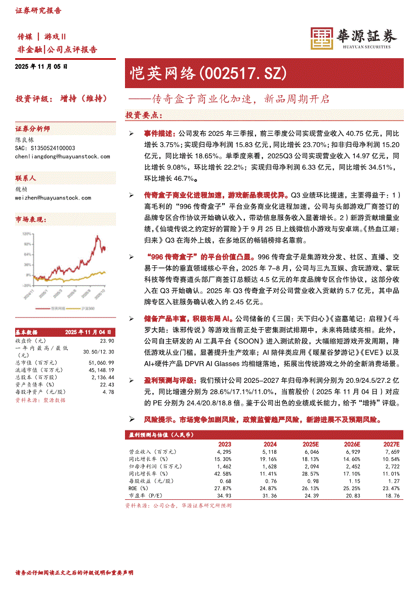 恺英网络研报:华源证券-恺英网络-002517-传奇盒子商业化加速,新品周期开启-251105