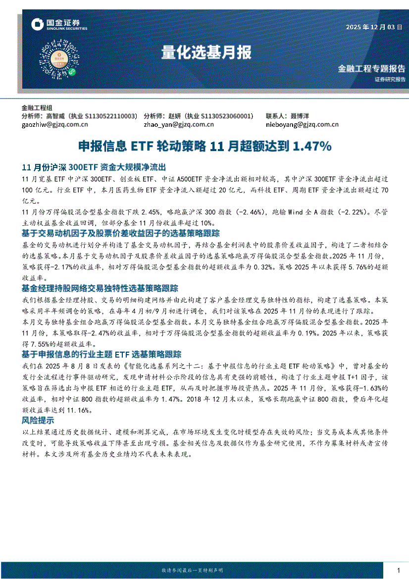 研报:国金证券-量化选基月报:申报信息ETF轮动策略11月超额达到1.47%-251203