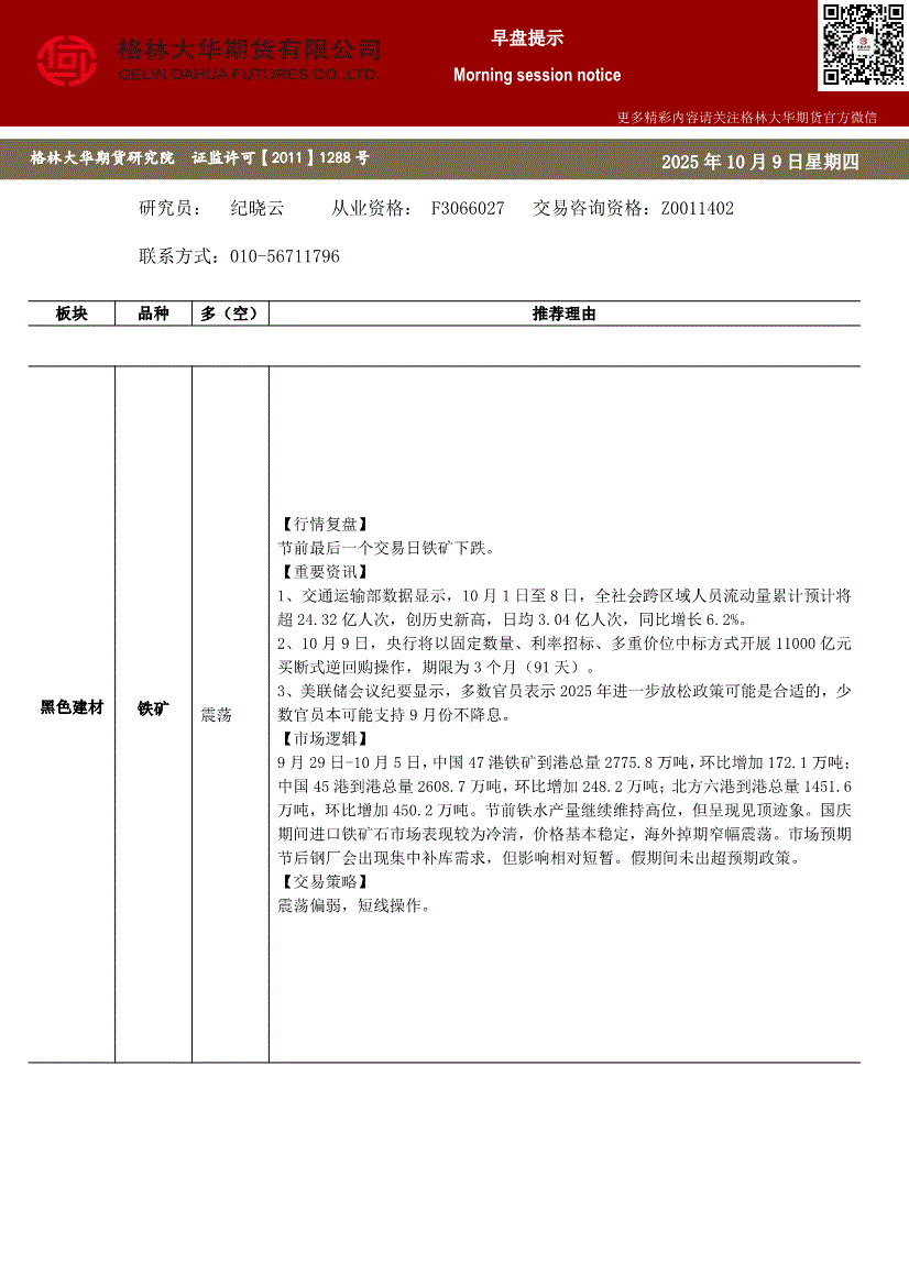 方正中期期货-黑色系焦煤焦炭日度策略-251009
