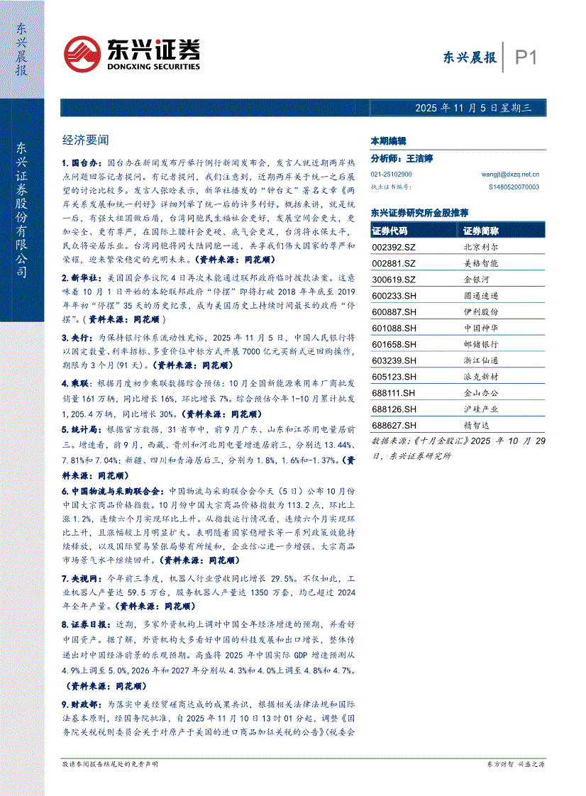 山西证券-电力设备及新能源行业周报:宇树将发布四足机器人新品,“十五五”坚持风光水核等多能并举-251104