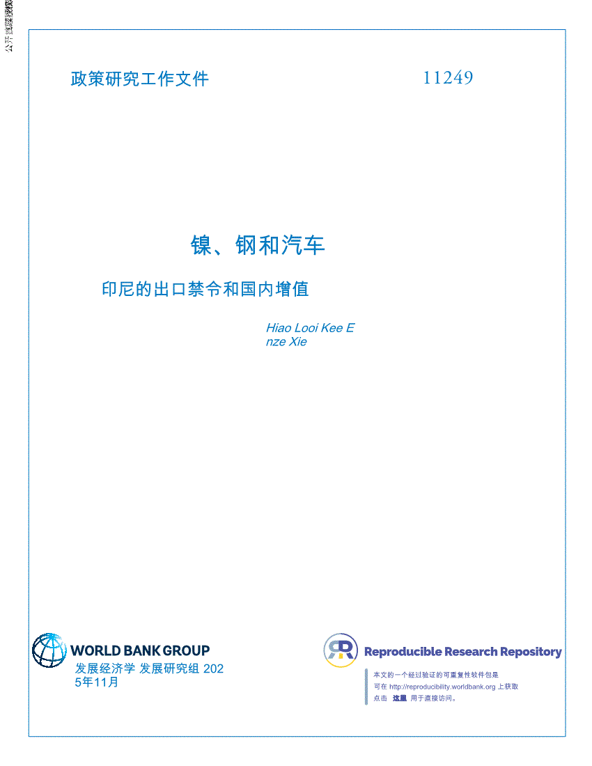 镍、钢铁和汽车行业研报:世界银行-镍、钢铁和汽车行业:印尼的出口禁令和国内附加值(英译中)-251127