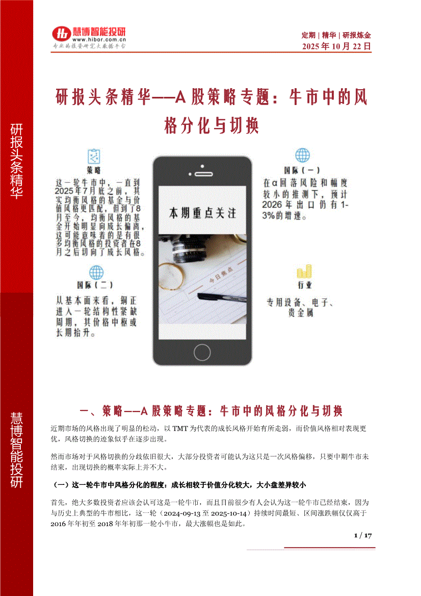 研报:慧博智能投研-慧博研报炼金之研报头条精华:A股策略专题,牛市中的风格分化与切换-251022