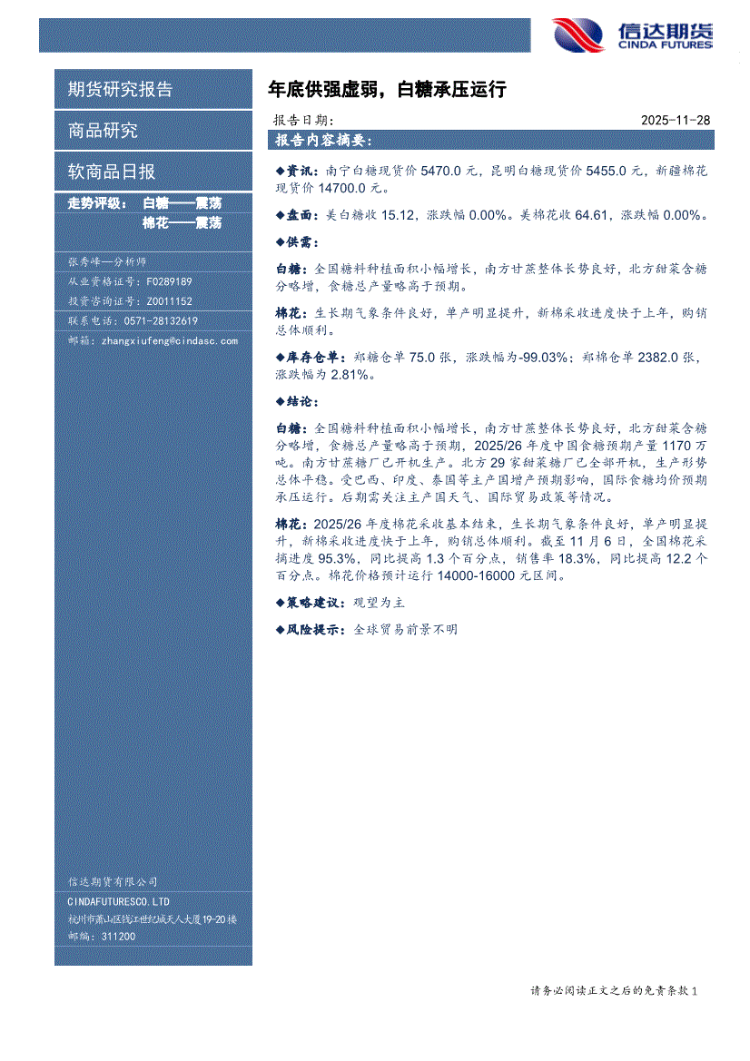 研报:信达期货-软商品日报:年底供强虚弱,白糖承压运行-251128