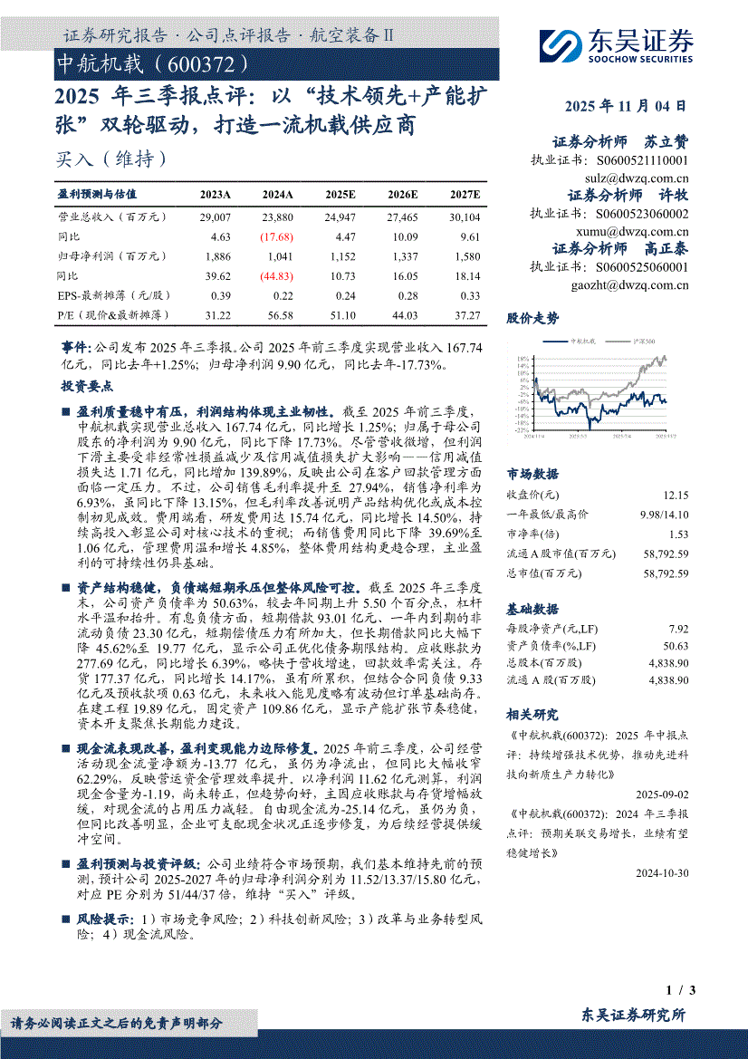 中航机载研报:金宝搏官网188金宝搏-中航机载-600372-2025年三季报点评:以“技术领先+产能扩张”双轮驱动,打造一流机载供应商-251104