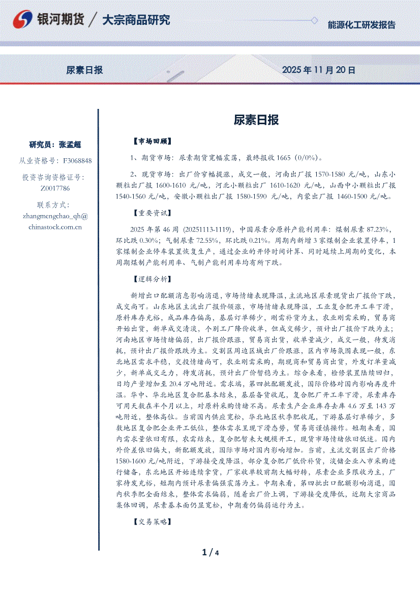 研报:银河期货-尿素日报-251120