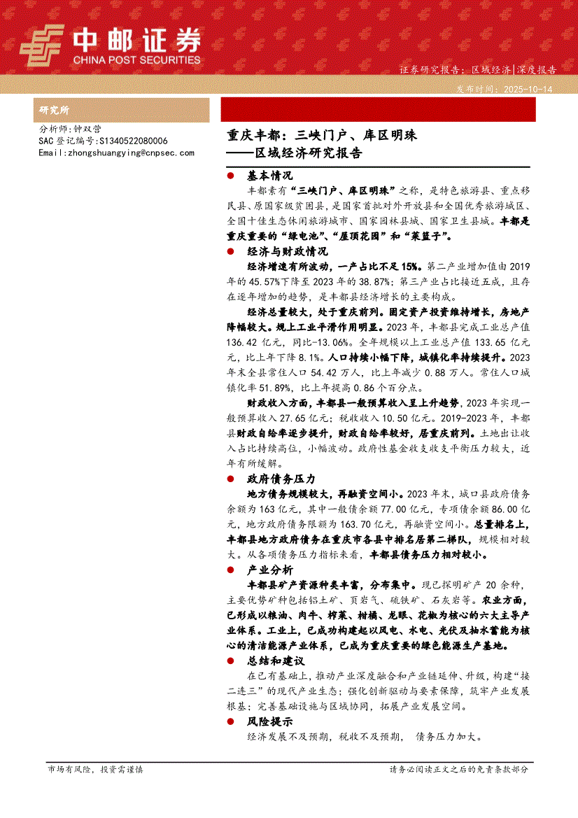 研报:中邮证券-区域经济研究报告:重庆丰都,三峡门户、库区明珠-251014