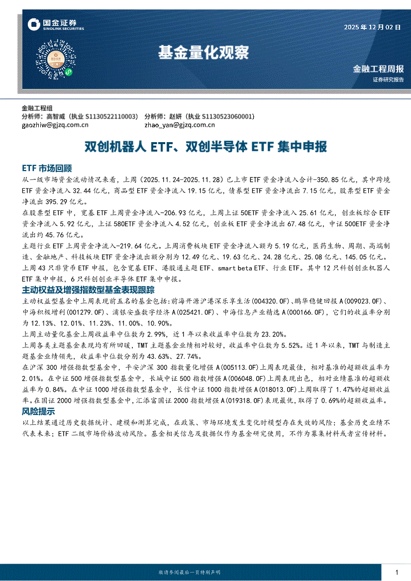 研报:国金证券-基金量化观察:双创机器人ETF、双创半导体ETF集中申报-251202