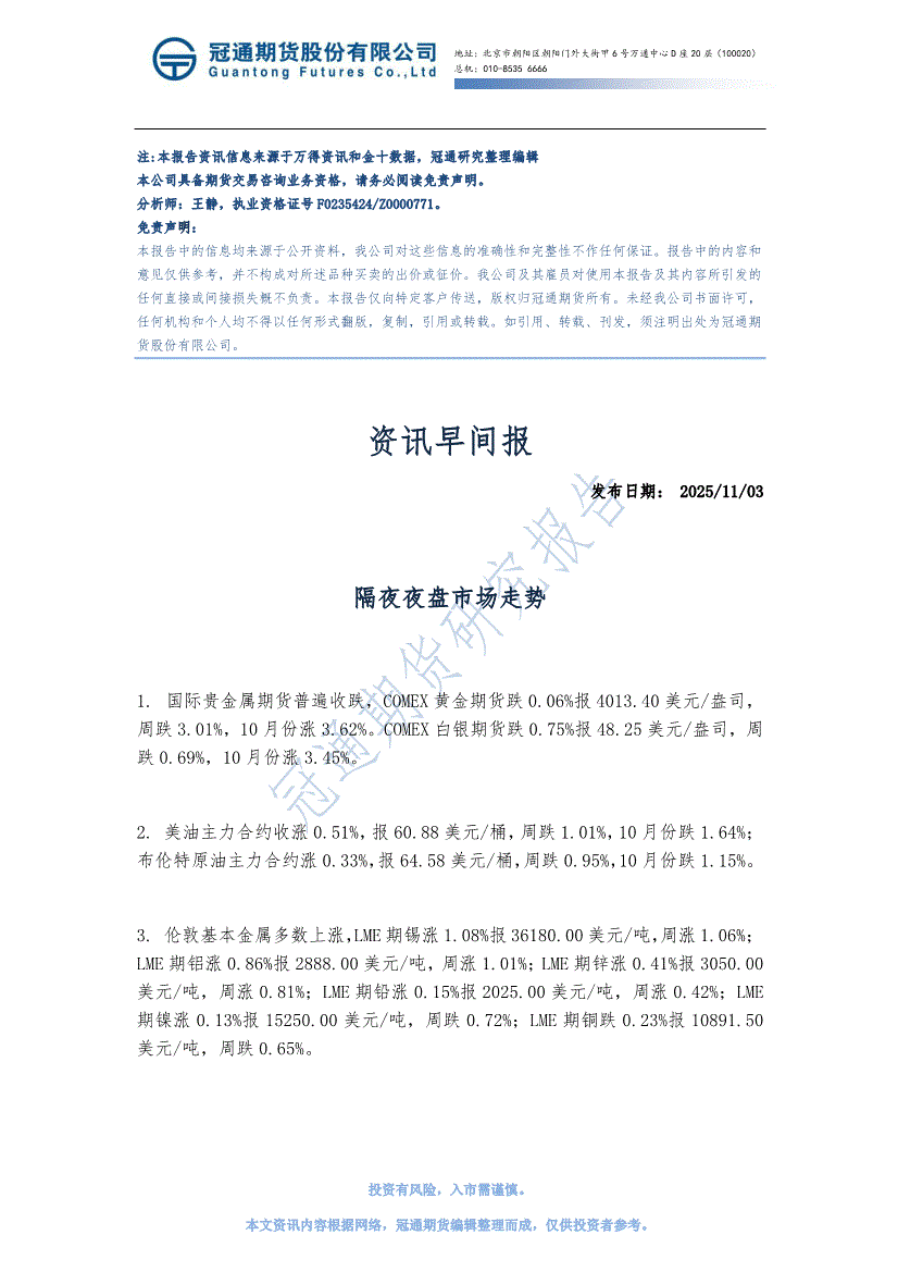 研报:冠通期货-资讯早间报-251103