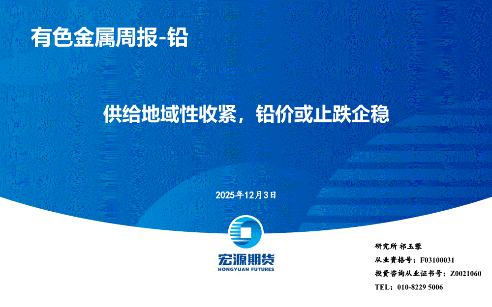 研报:宏源期货-有色金属周报~铅:供给地域性收紧,铅价或止跌企稳-251203