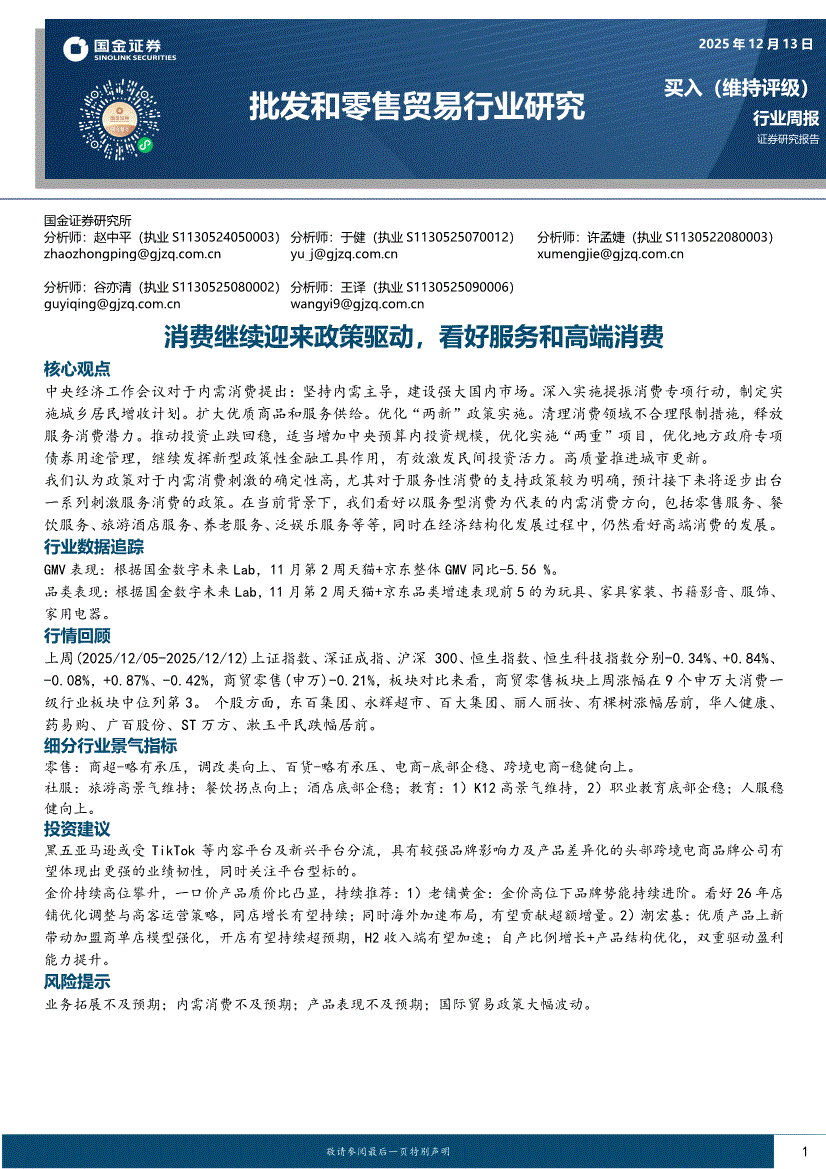 批发和零售贸易行业研报:国金证券-批发和零售贸易行业研究:消费继续迎来政策驱动,看好服务和高端消费-251213